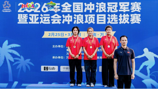 3月6日,2026年全国冲浪冠军赛暨亚运会冲浪项目选拔赛在海南万宁日月湾圆满落幕。在女子公开组短板决赛中,海南大学休闲体育专业学生王雪银、王静微、邓雪莹凭借绝对实力强势包揽冠、亚、季军,用浪尖风采彰显海南大学以体育人成效。